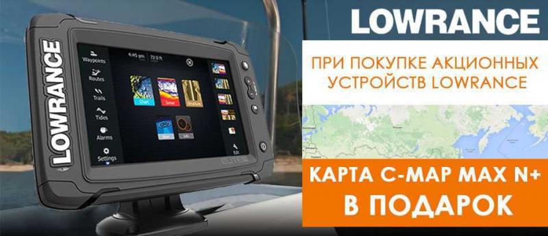 При покупке акционных эхолотов/картплоттеров Lowrance вы можете бесплатно загрузить карту C-Map Wide Max N+. Предложение действует до 30 июня 2016 года.